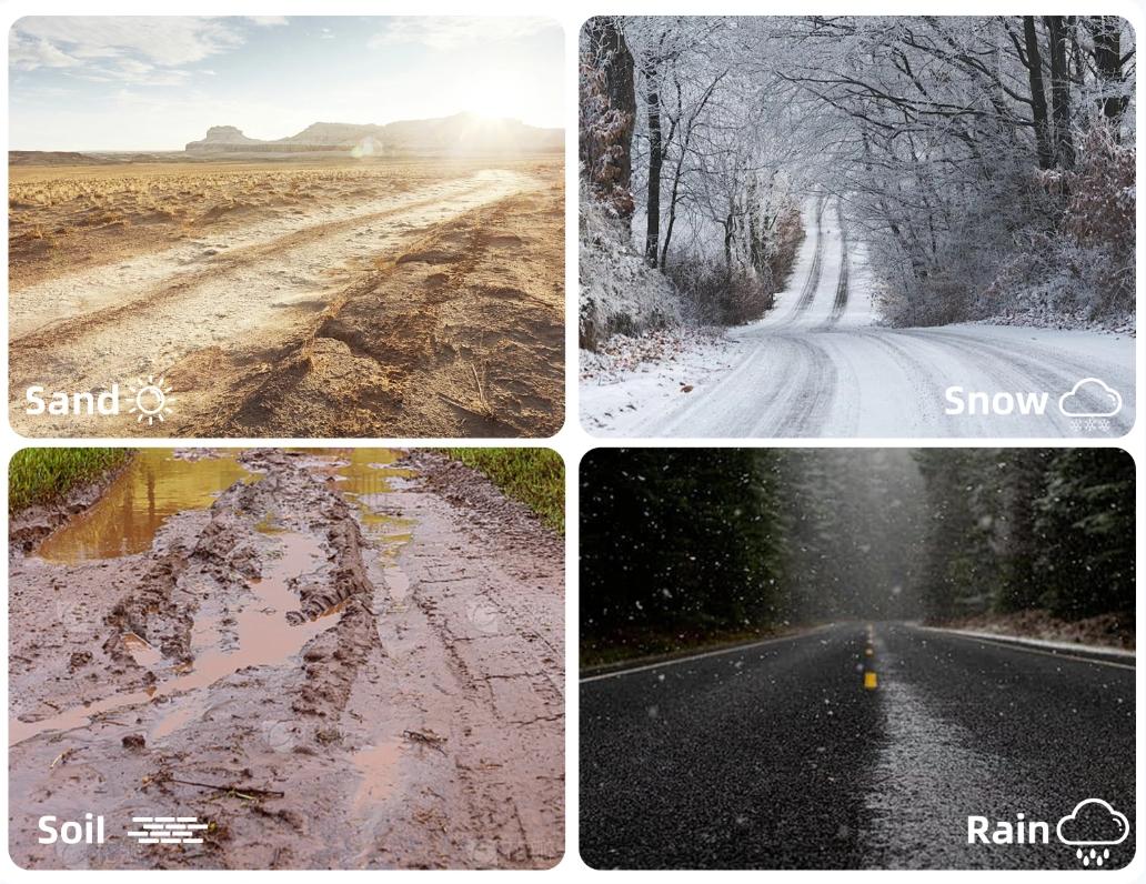 • Modstandsdygtig over for vand, mudder, sne og snavs
