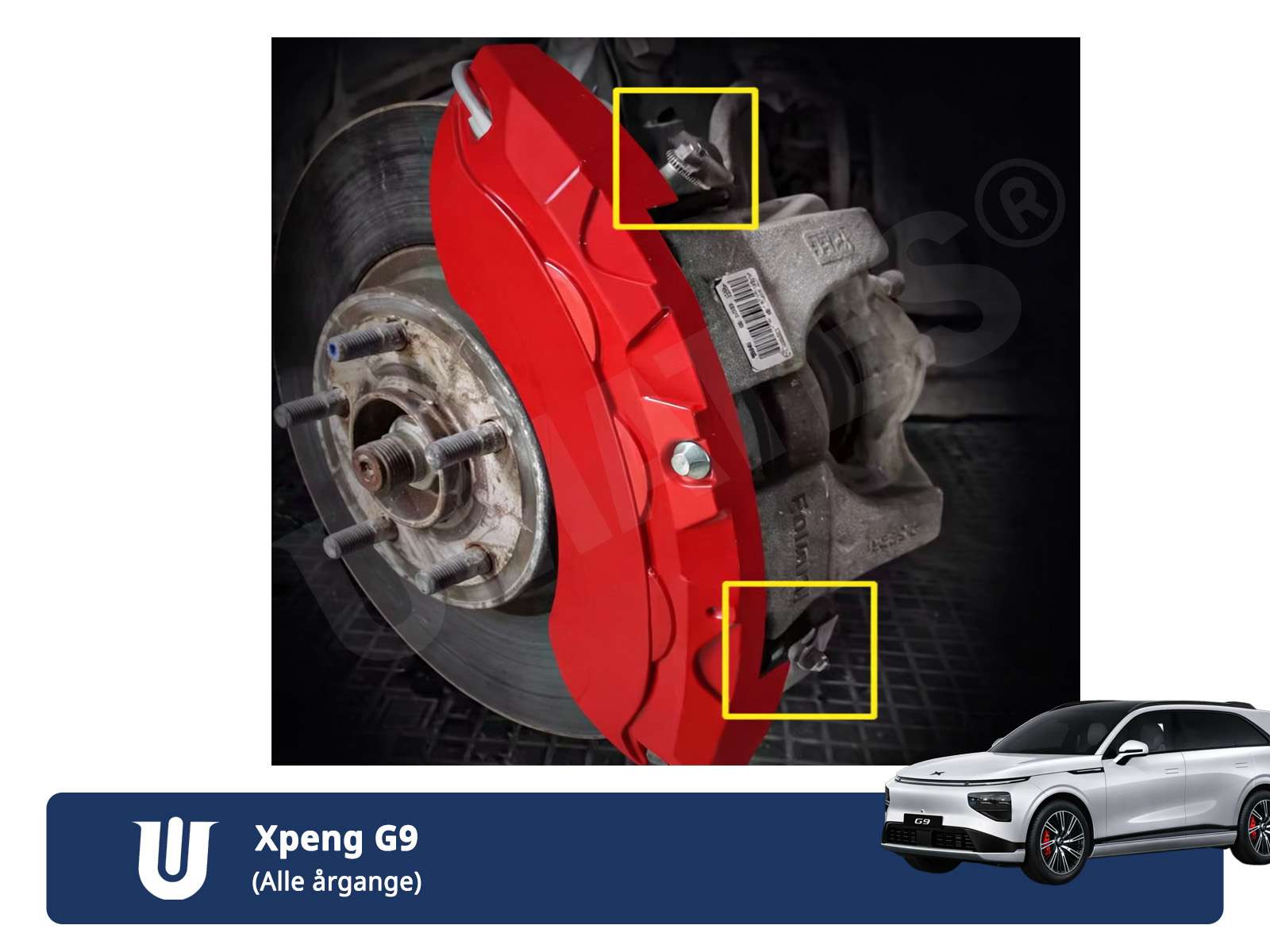 Designet specifikt til Xpeng G9 (modelår 2022, 2023, 2024, 2025, 2026 og 2027) og bilens originale bremsesystem – ikke en universalløsning.