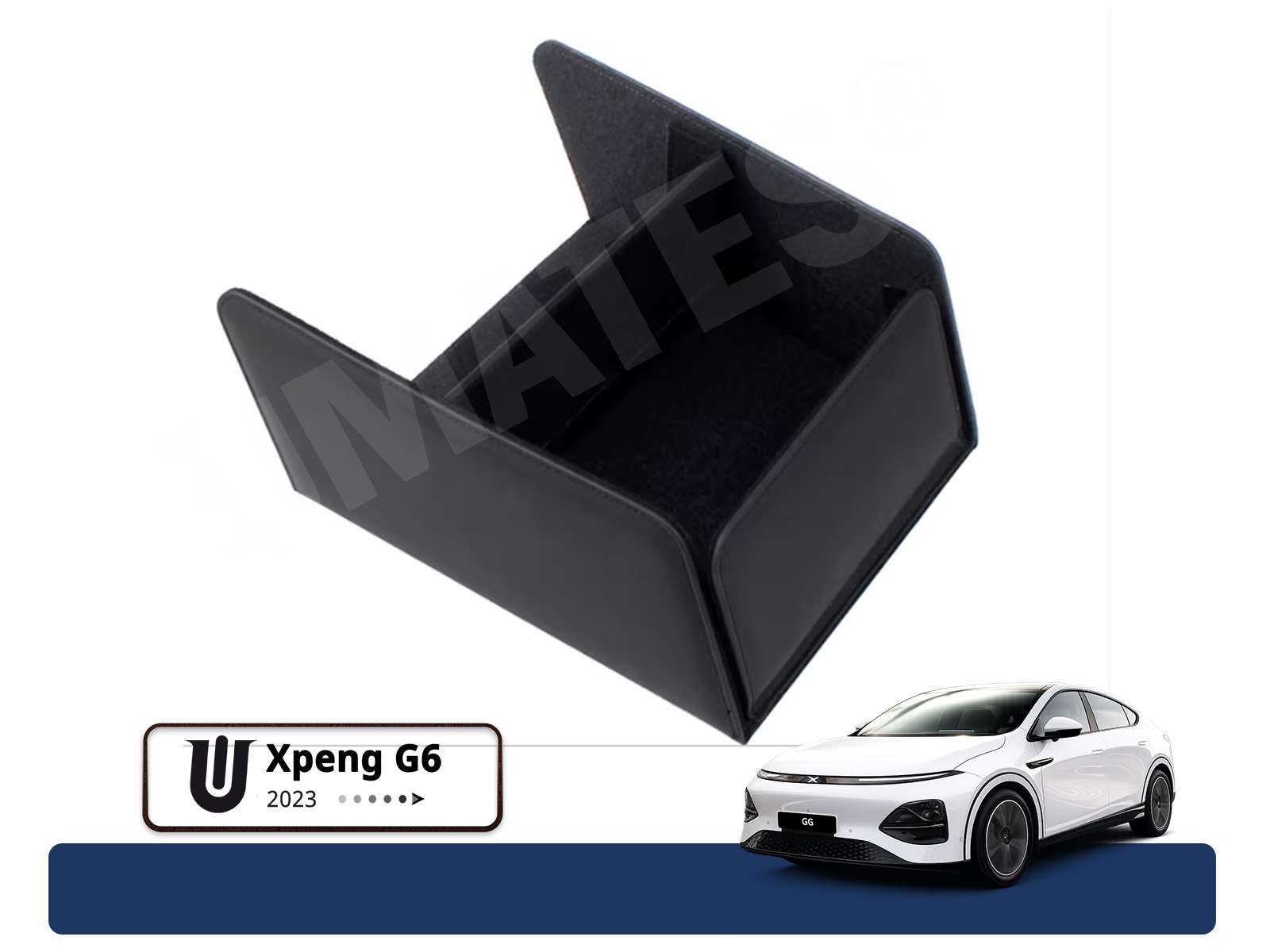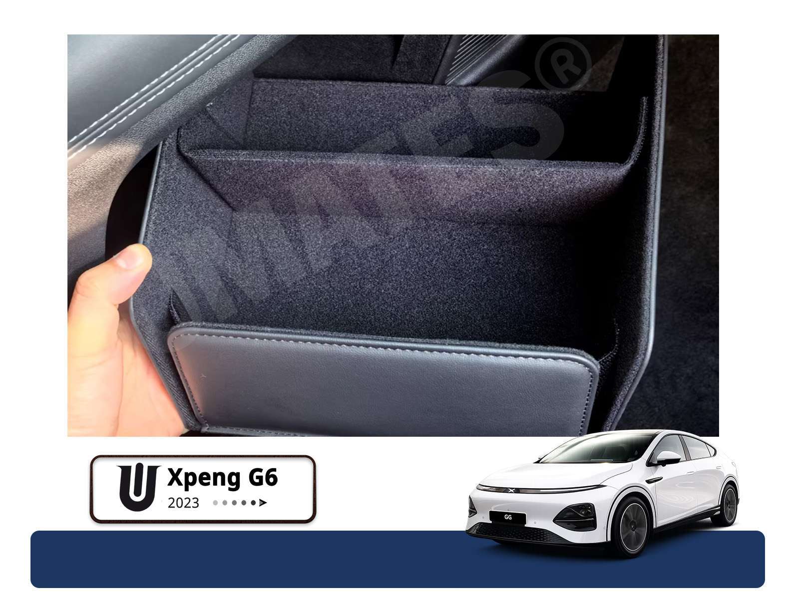 Eksklusiv indsats til midterkonsolen med høj kant i Xpeng G6 (alle årgange) er fremstillet i ægte koskin med elegant læderlook. Den forhøjede kant giver mulighed for opbevaring af større genstande – En stilren, eksklusiv og funktionel opgradering til Xpeng G6.