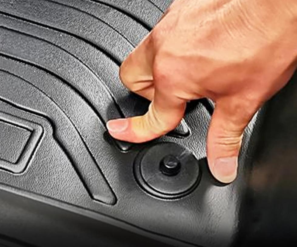 Af hensyn til trafiksikkerheden skal bilmåtten fastgøres til bilens gulv. Derfor er det vigtigt, at der er en anordning, som kan fastgøre bilmåtten. så den ikke rutsjer rundt.