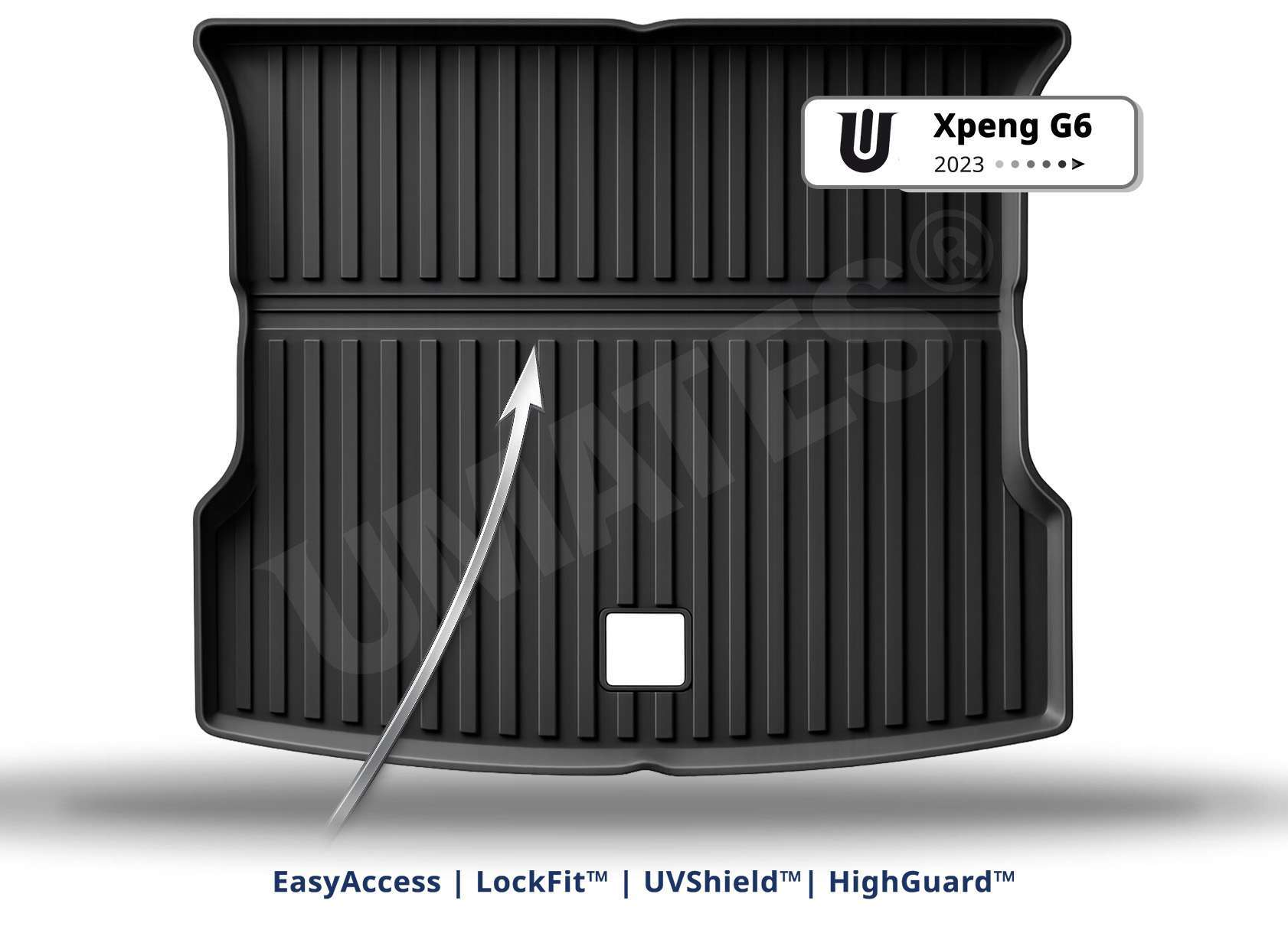 Xpeng G6 | Bilmåtter Kabine & Bagagerum består af ialt 4 stk. gummimåtter til kabine- og bagagerum. Bilmåtterne til Kabine- & Bagagerum er specialdesignede og formstøbt specielt til din Xpeng G6. De er produceret i en meget kraftig genbrugsgummi, og er ubetinget markedets bedste tilbud.