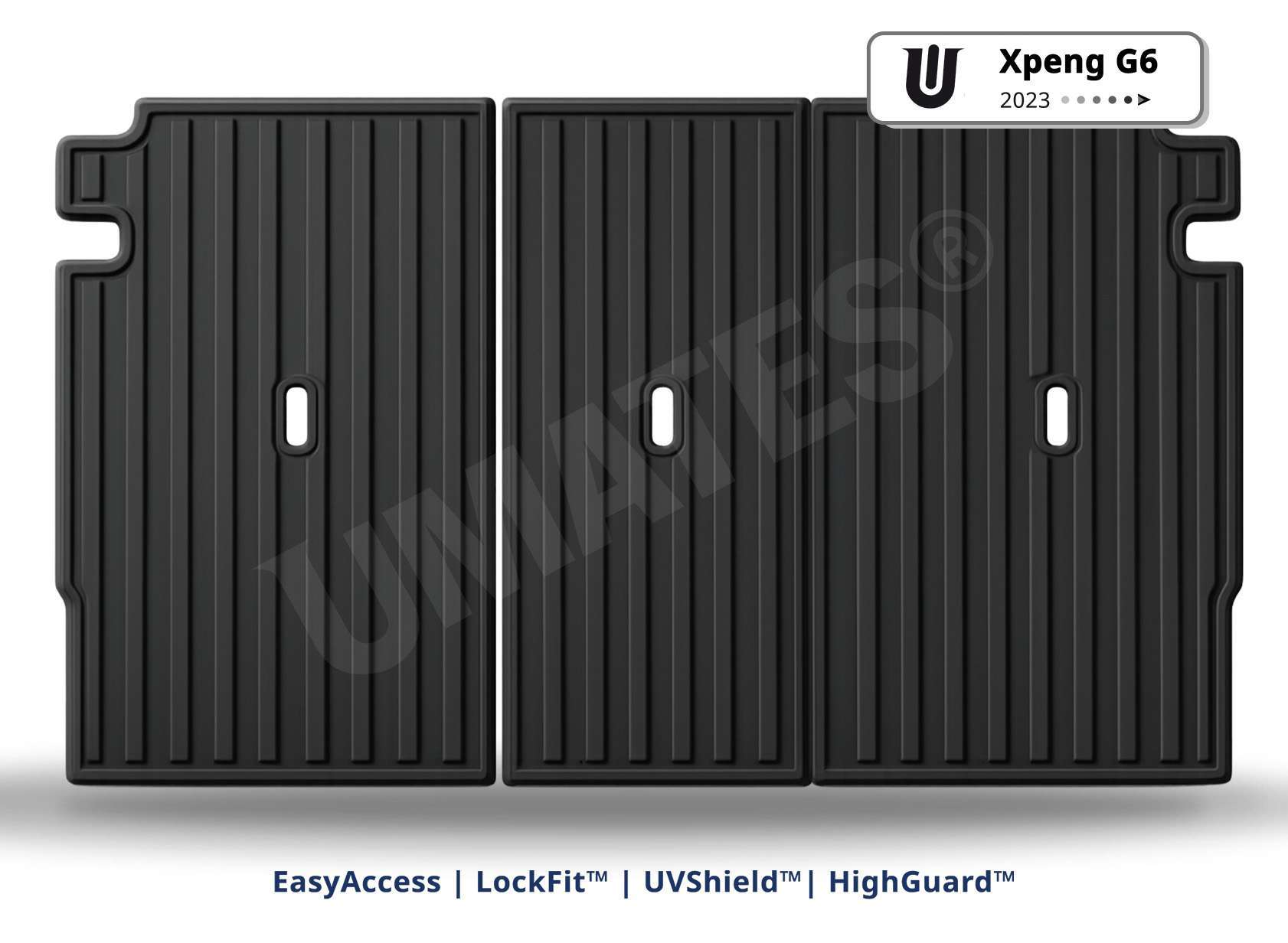 Xpeng G6 | Pakketilbud Alle GummiMåtter består tre forskellige sæt af måtter, i alt 6 dele. Alle gummimåtterne er specialdesignede og formstøbt specielt til Xpeng G6. Du får en komplet pakke, skræddersyet til din bil. De kraftige gummimåtter holder det meste af bilens levetid.