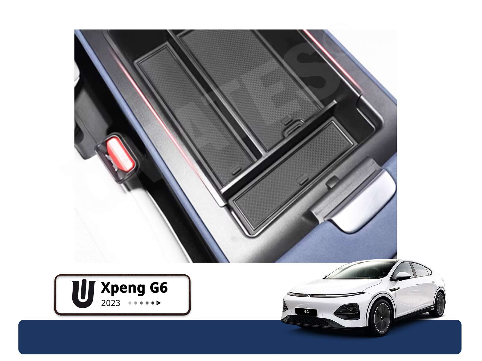 Bemærk, at du kan også købe indsatsen, som en del af vores favorable pakketilbud, hvor du også får indsatser til Xpeng G6‘s armlæn og bag hovedskærmen:
