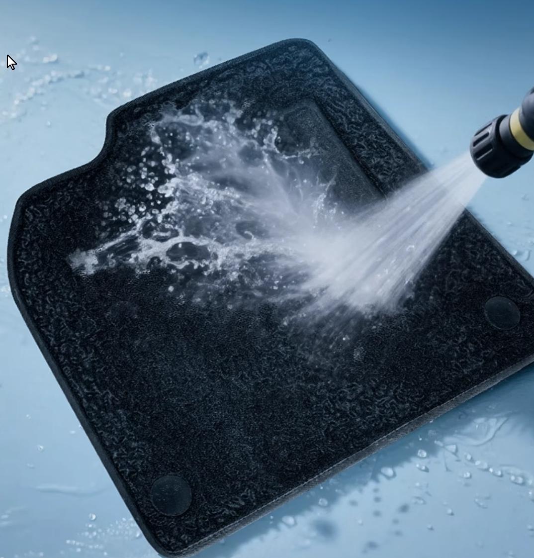 Kraftige bilmåtter gør det hurtigt og nemt at rengøre kabinen – du tager blot måtterne ud og skyller med en haveslange eller højtryksspuler.