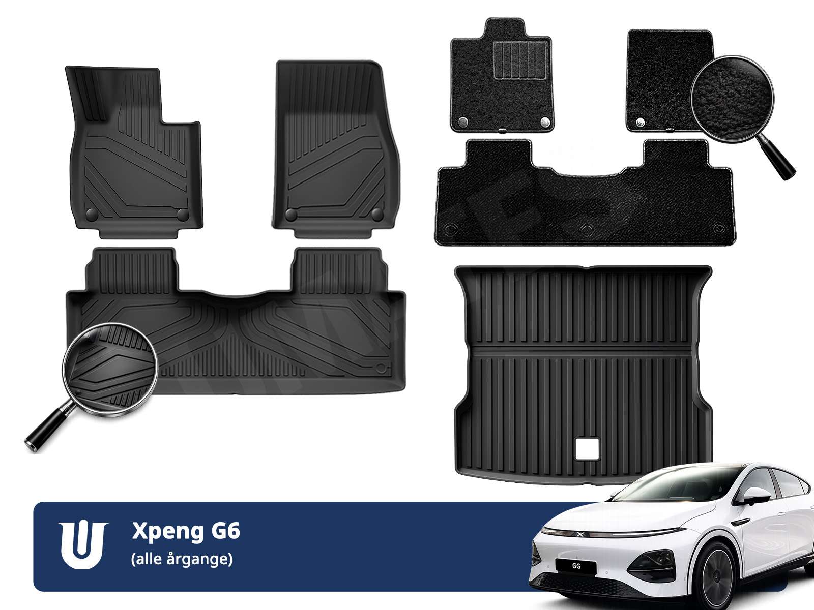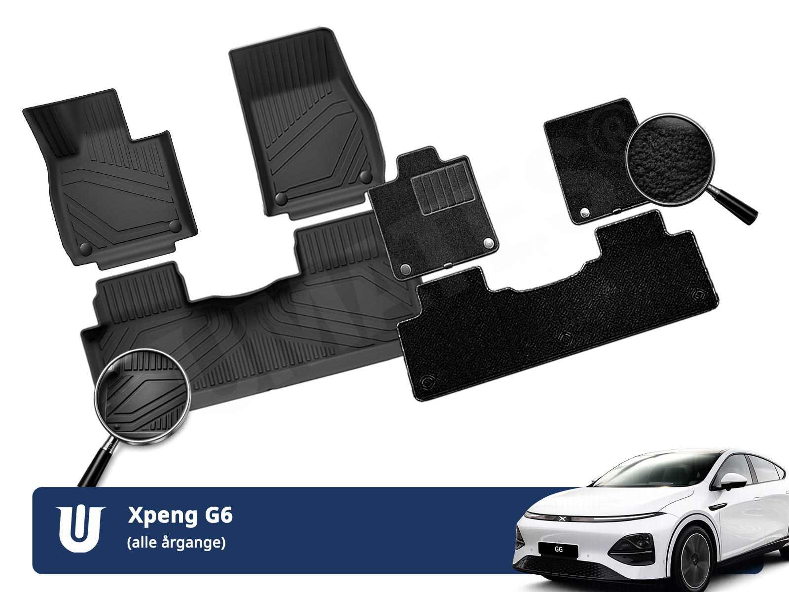 Xpeng G6 komplet måttesæt 7 dele i gummi og velour